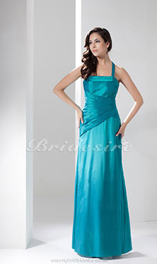 Corte Recto Escote Halter Hasta el Suelo Sin Mangas Satén Vestido