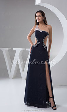 Corte A Solo Hombro Hasta el Suelo Sin Mangas Gasa Vestido