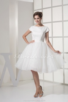 Corte Princesa Escote A la Base Hasta la Rodilla Manga Corta Organza Tafetán Vestido