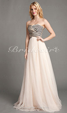 Corte Recto Tul Hasta el Suelo Escote Corazón Vestido de fiesta