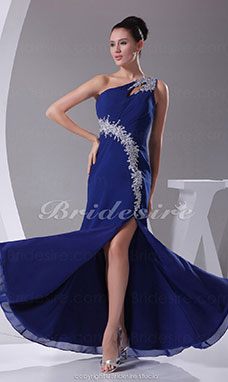 Corte Recton Solo Hombro Hasta el Suelo Gasa Vestido de fiesta
